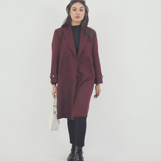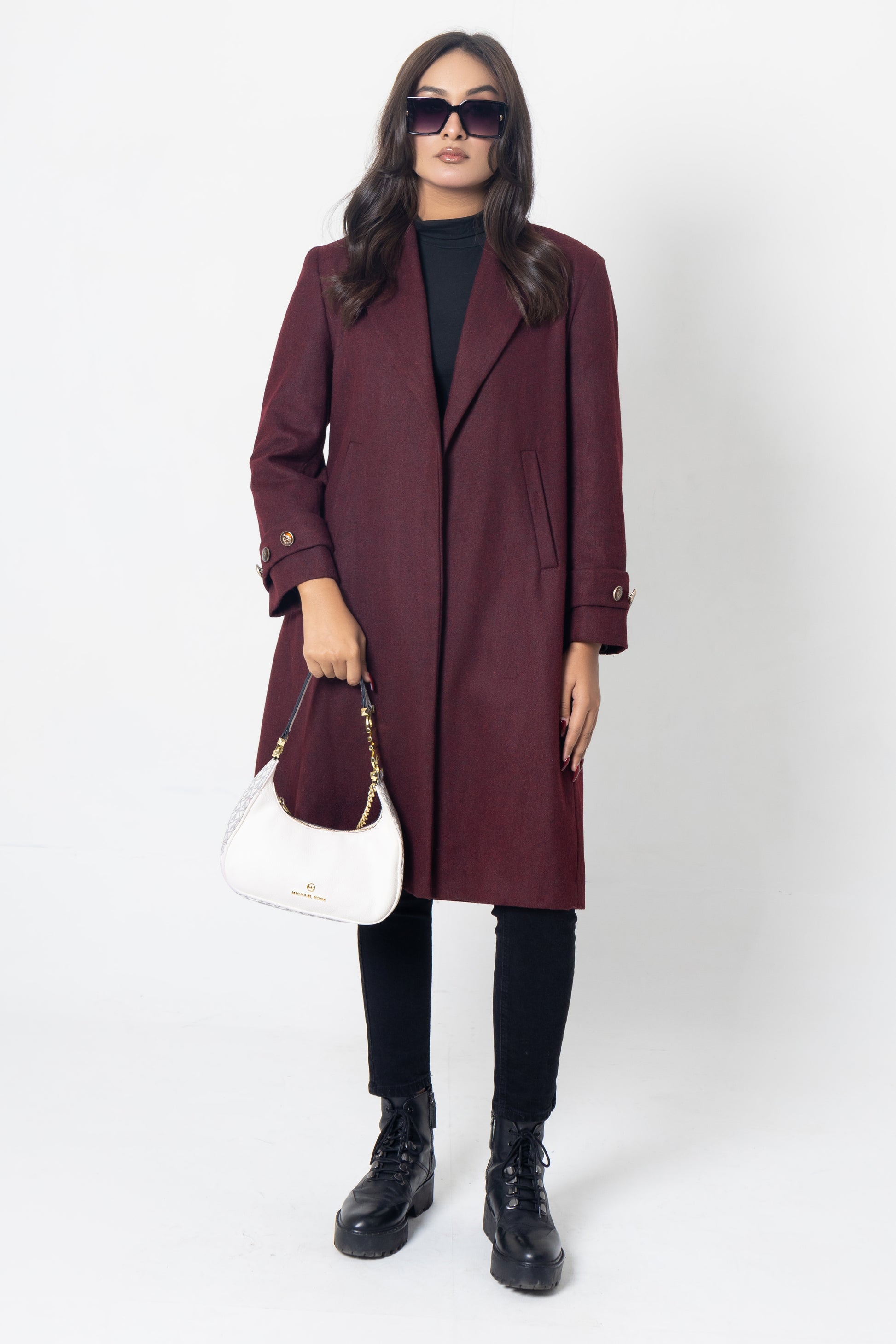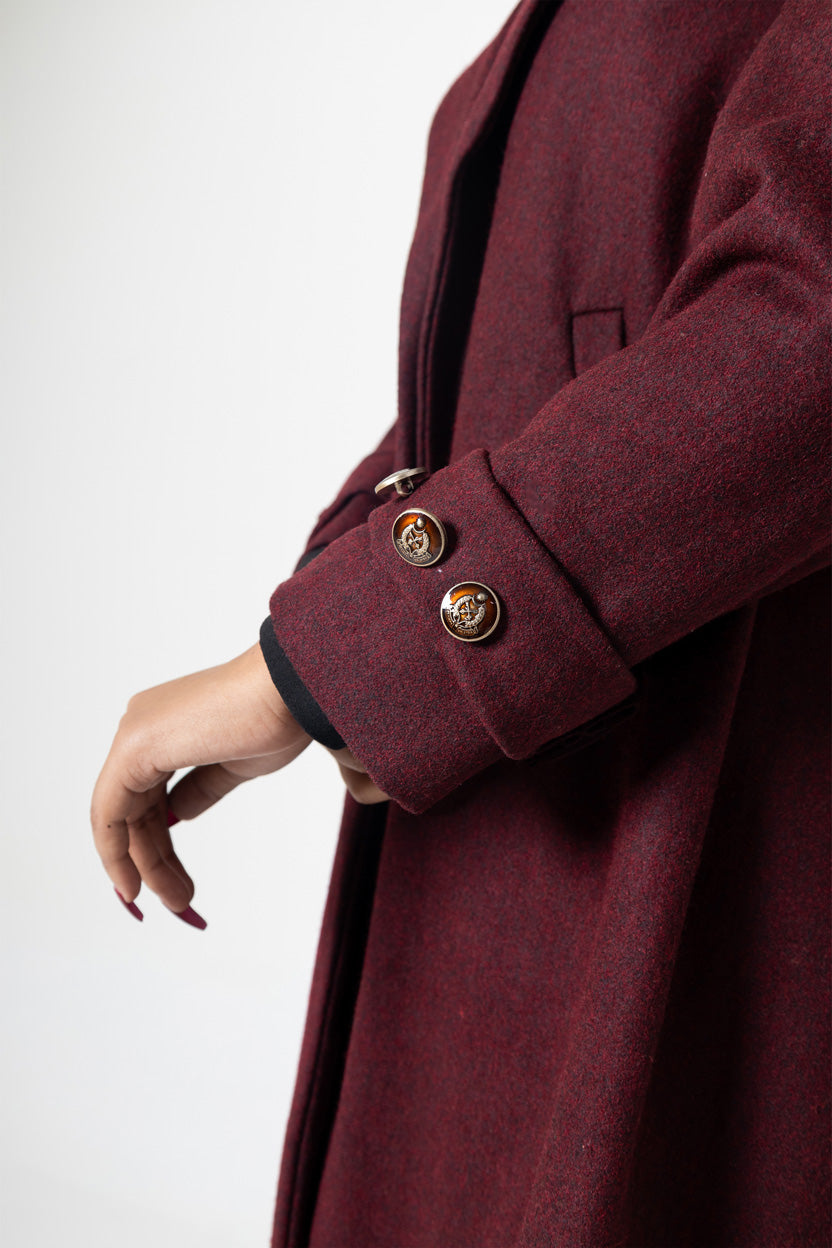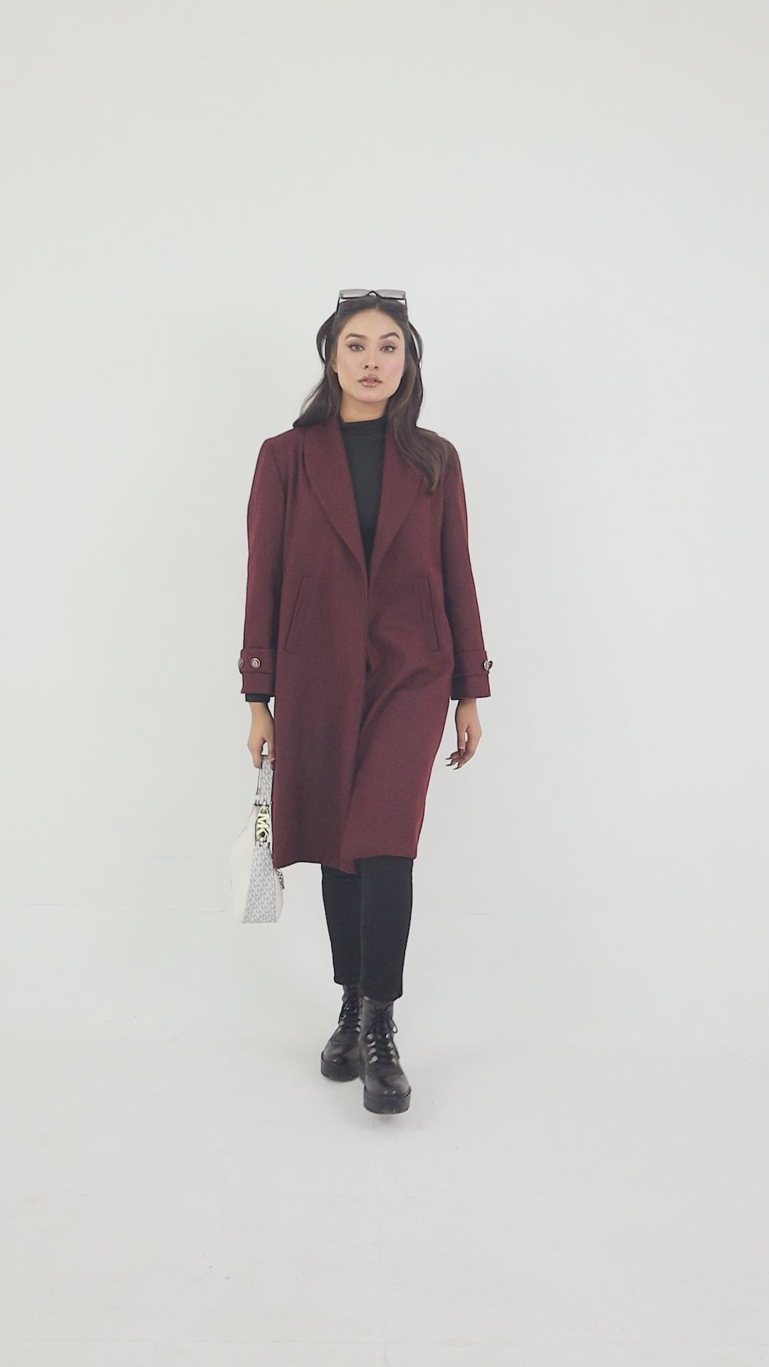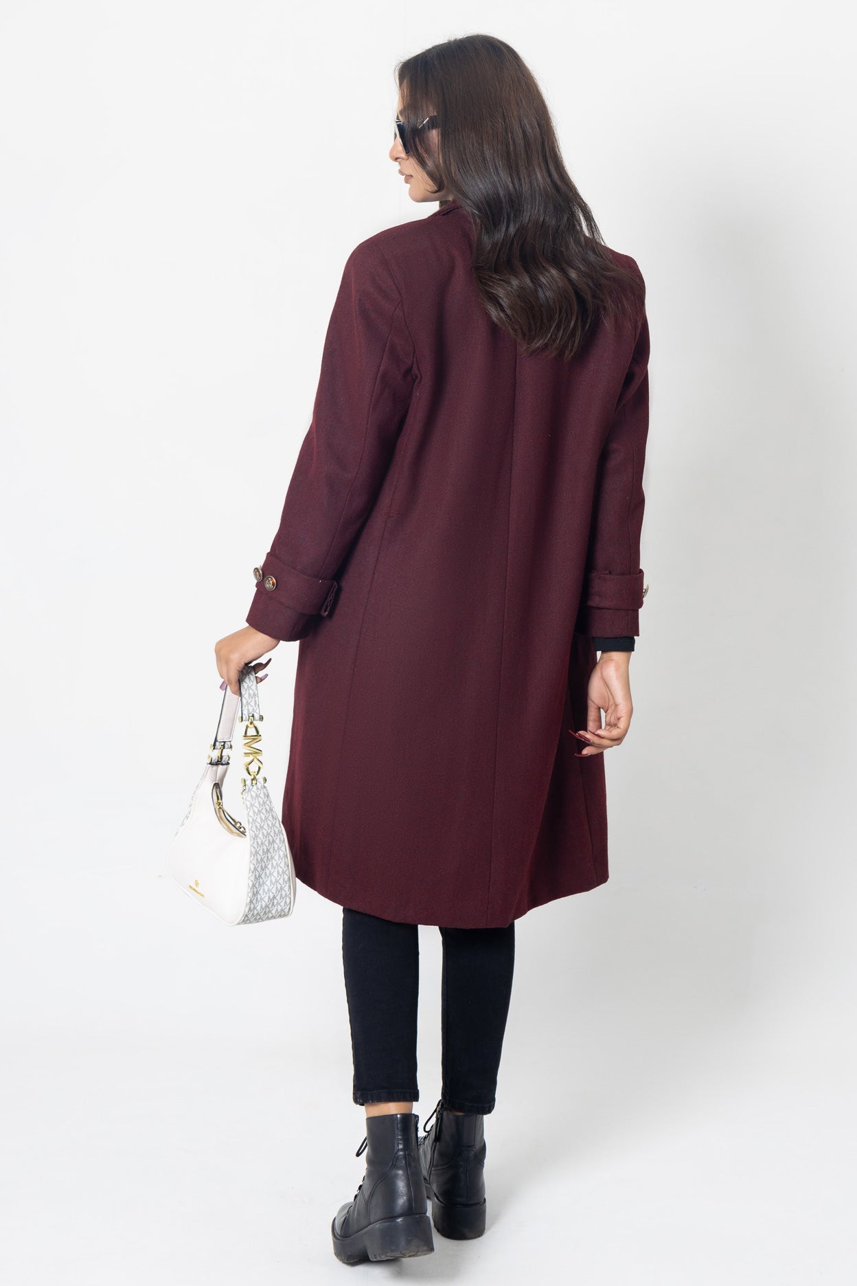 This maroon wool long coat is made from fine soft woolen fabric, providing both warmth and style. With full sleeves and a sleek design, it is perfect for any occasion. Expertly crafted for comfort and durability, this article is a must-have for any fashion-forward individual.