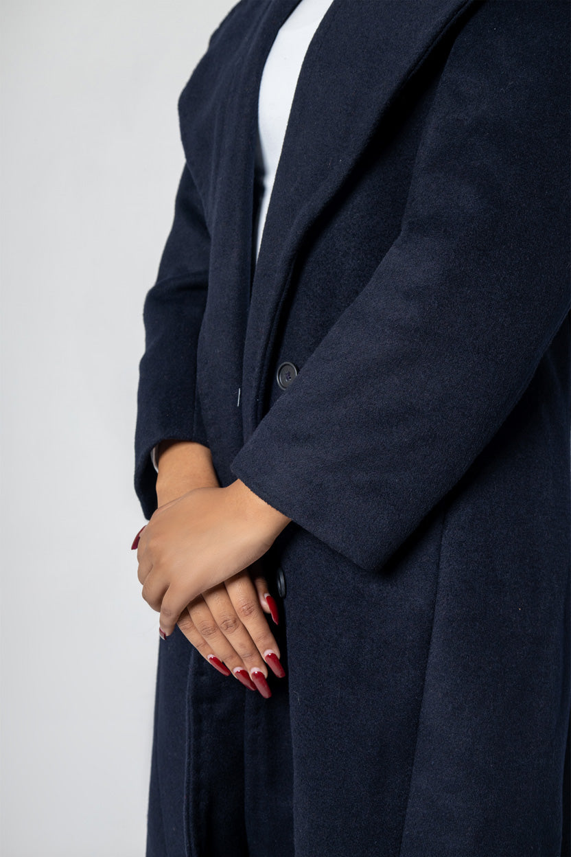 Expertly crafted from fine, soft wool, this full-sleeved long coat in a beautiful blue hue is the perfect addition to your winter wardrobe. With its timeless design and high-quality material, it will keep you warm and stylish for years to come. A must-have for any fashion-forward individual.