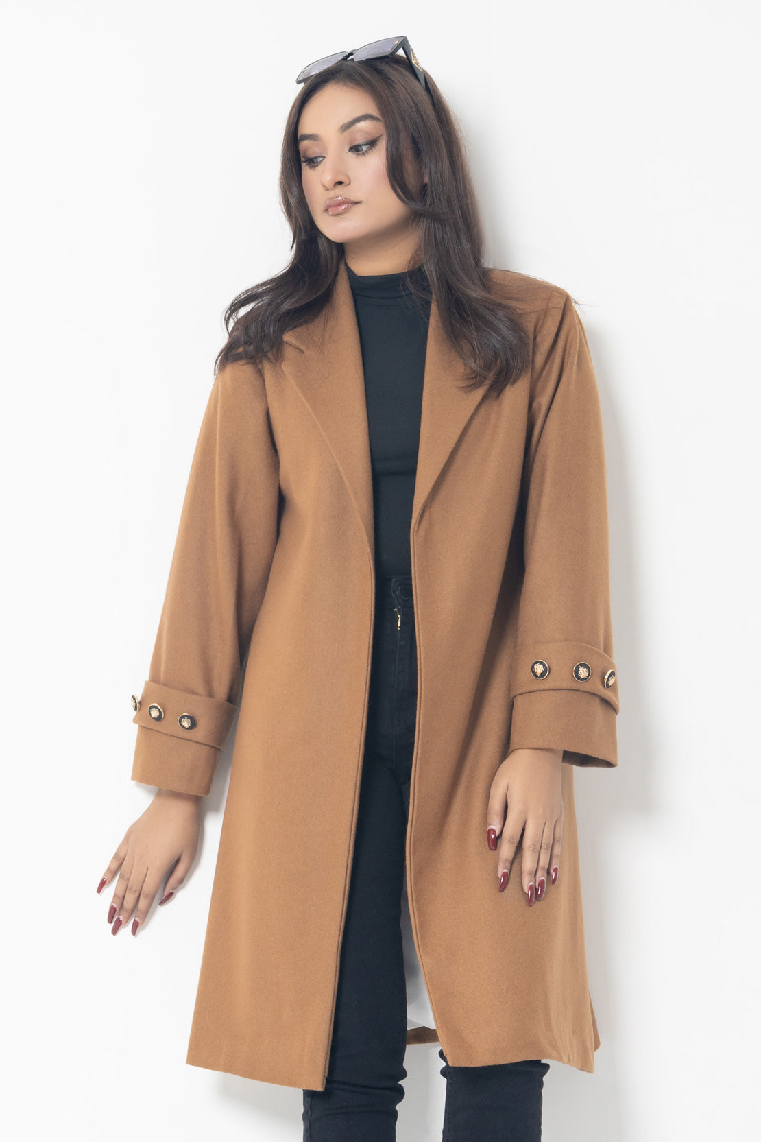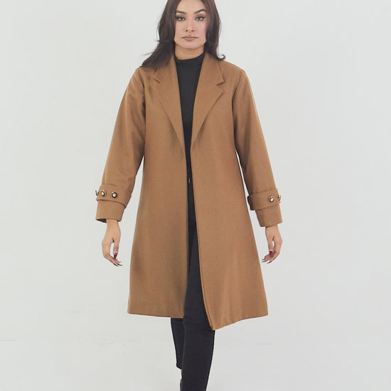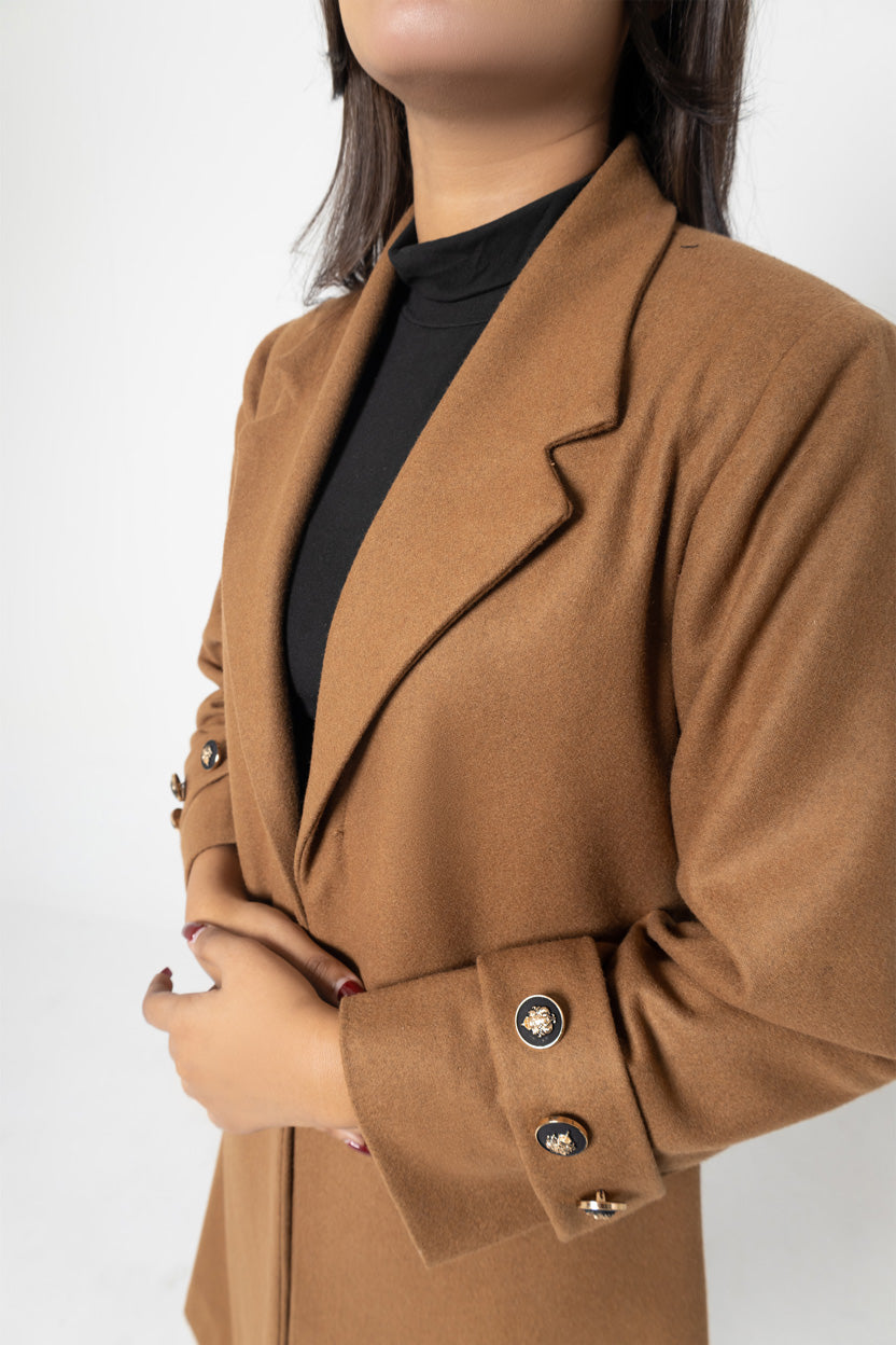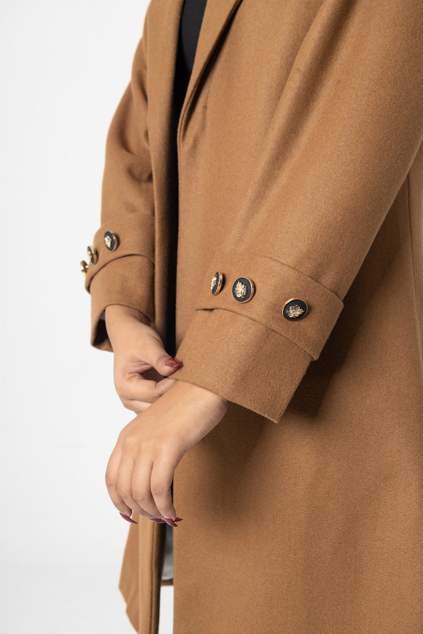This expertly crafted long coat is crafted with high-quality, fine wool for a soft and luxurious feel. Perfect for colder weather, the full sleeves provide added coverage and warmth. The rich mustard color adds a sophisticated touch to any outfit. Stay stylish and cozy in this must-have addition to your wardrobe.