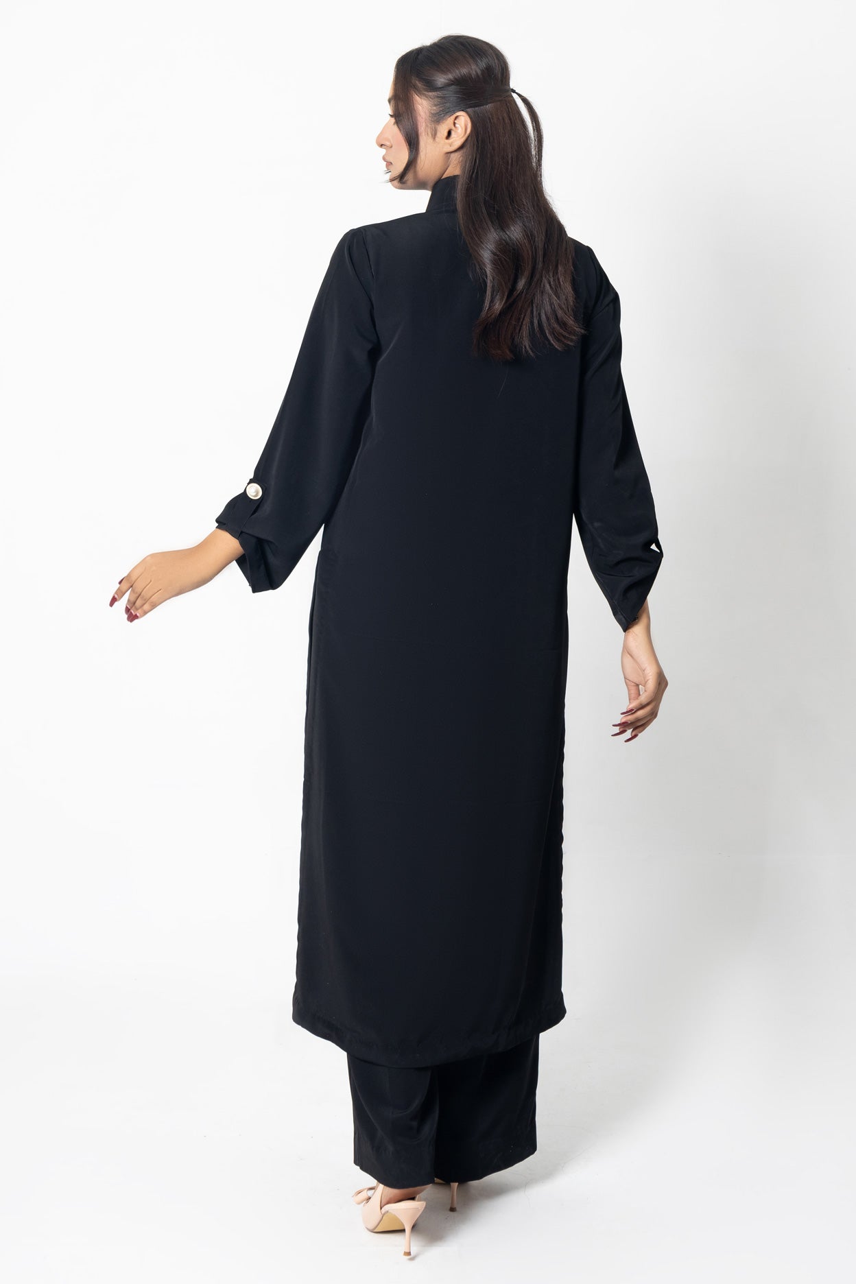 Expertly crafted from luxurious stone wash silk, the CL-01 has a naturally soft and elegant tone. The black fabric is complemented by naturally pearl buttons, adding a touch of sophistication. Complete with a matching trouser, this 2 piece set exudes effortless style.