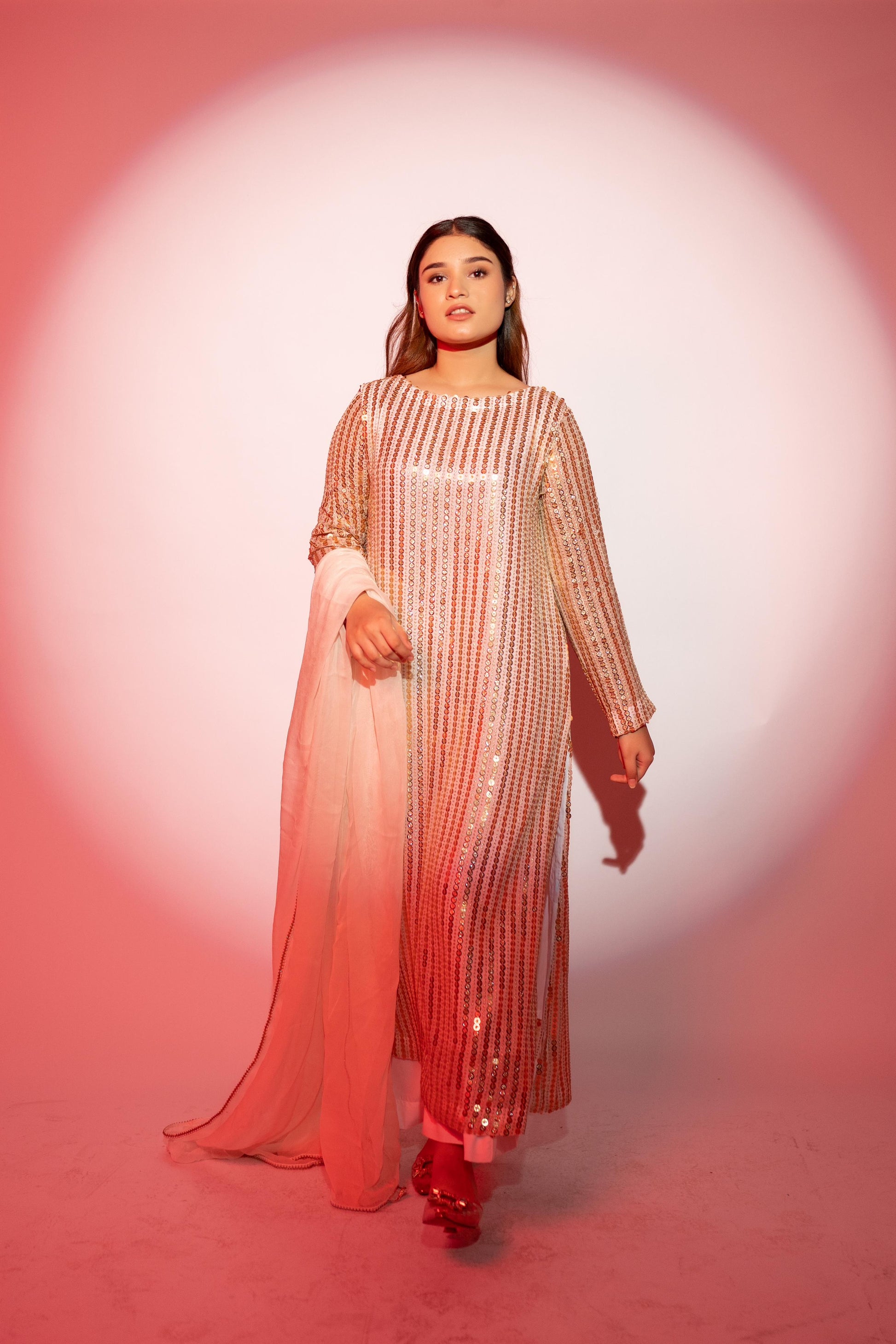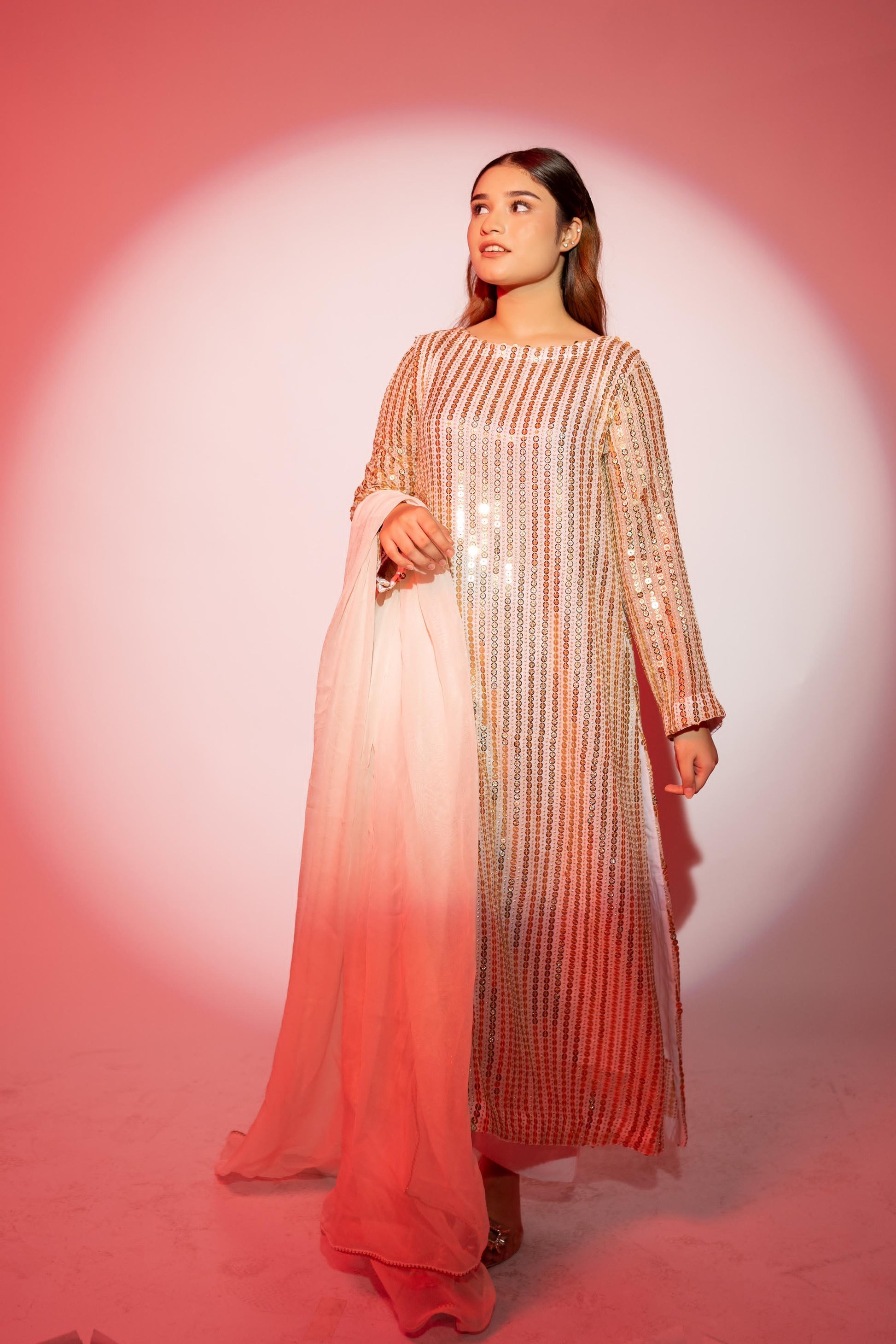 Fabric: Fully Sequine Chiffon Pure white Embroidered Front Back sleeves