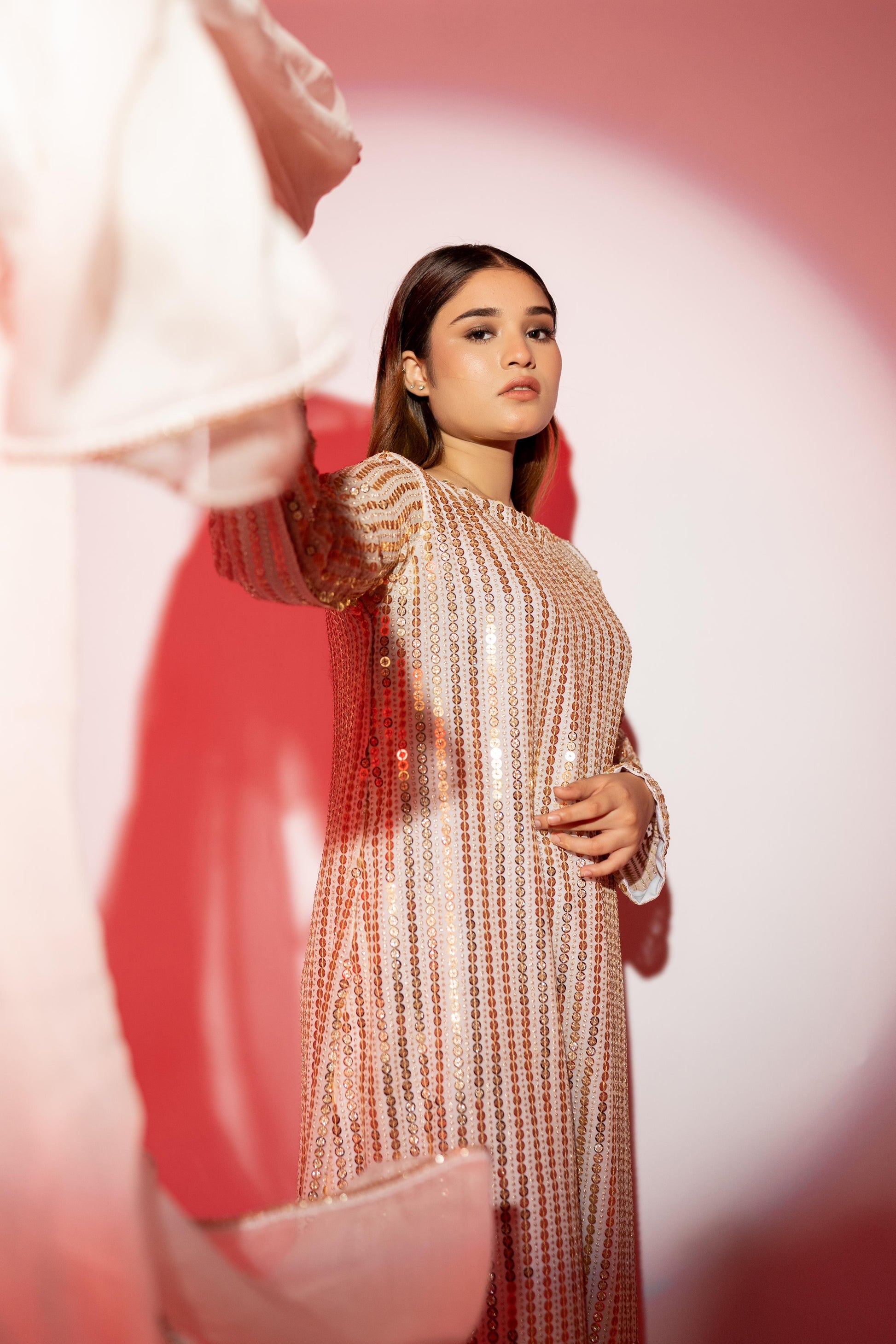 The MH-02 is a stunning garment, made from high-quality fabric for a luxurious feel. The fully sequined chiffon and pure white embroidery exude elegance, while the crape silk and chiffon materials provide a soft and comfortable fit. Perfect for any occasion, this piece is the epitome of style and sophistication.
