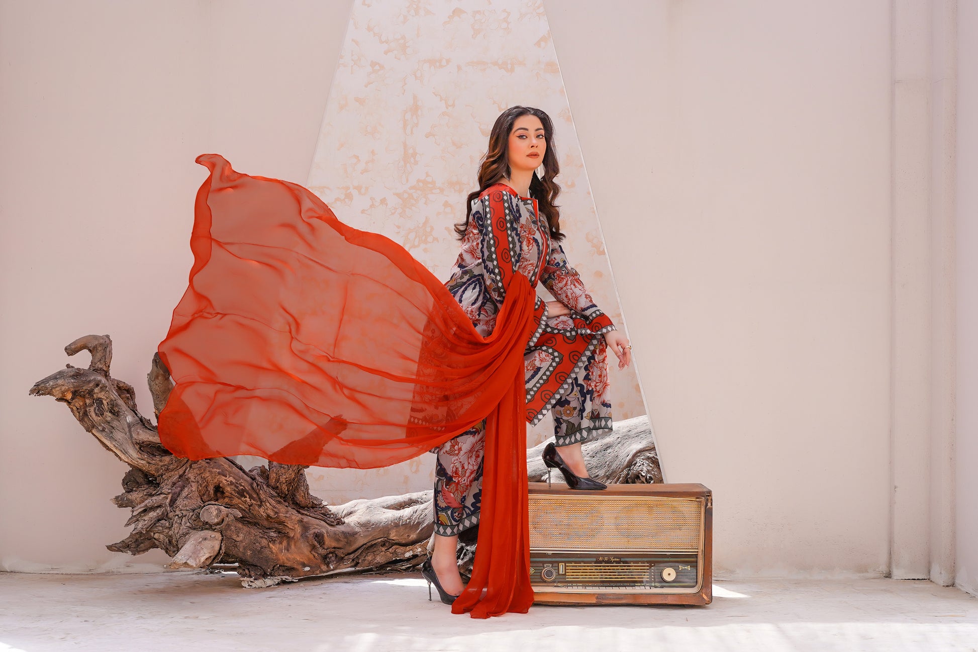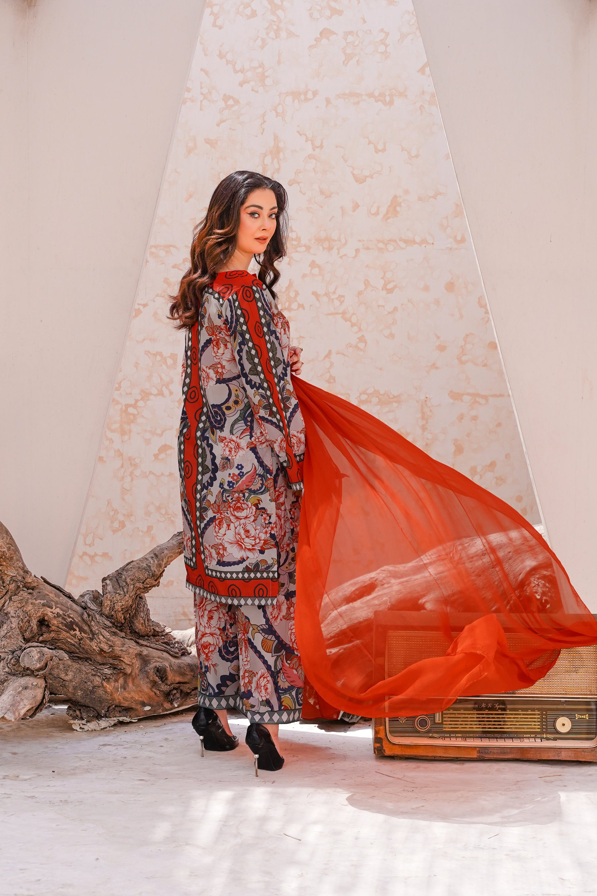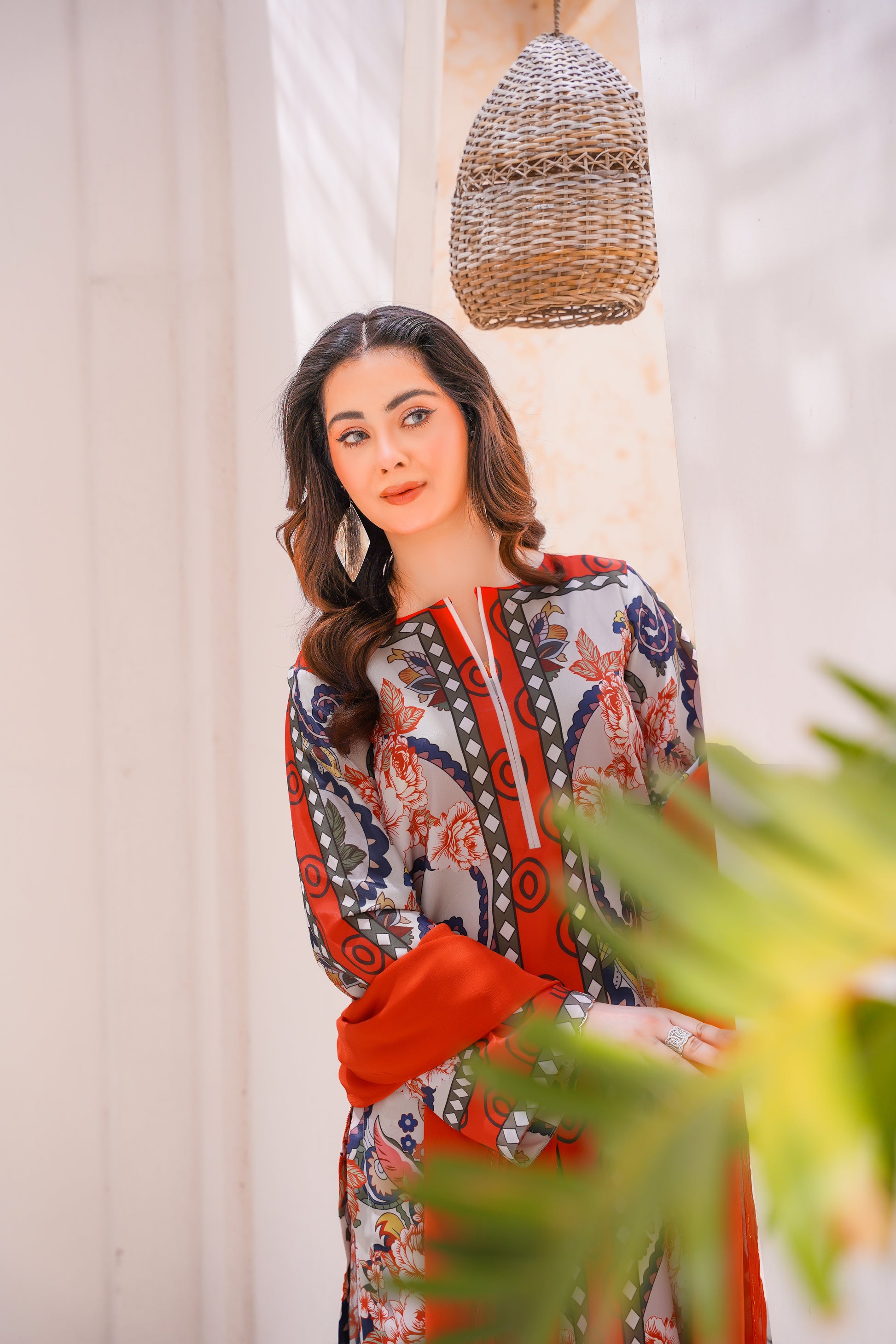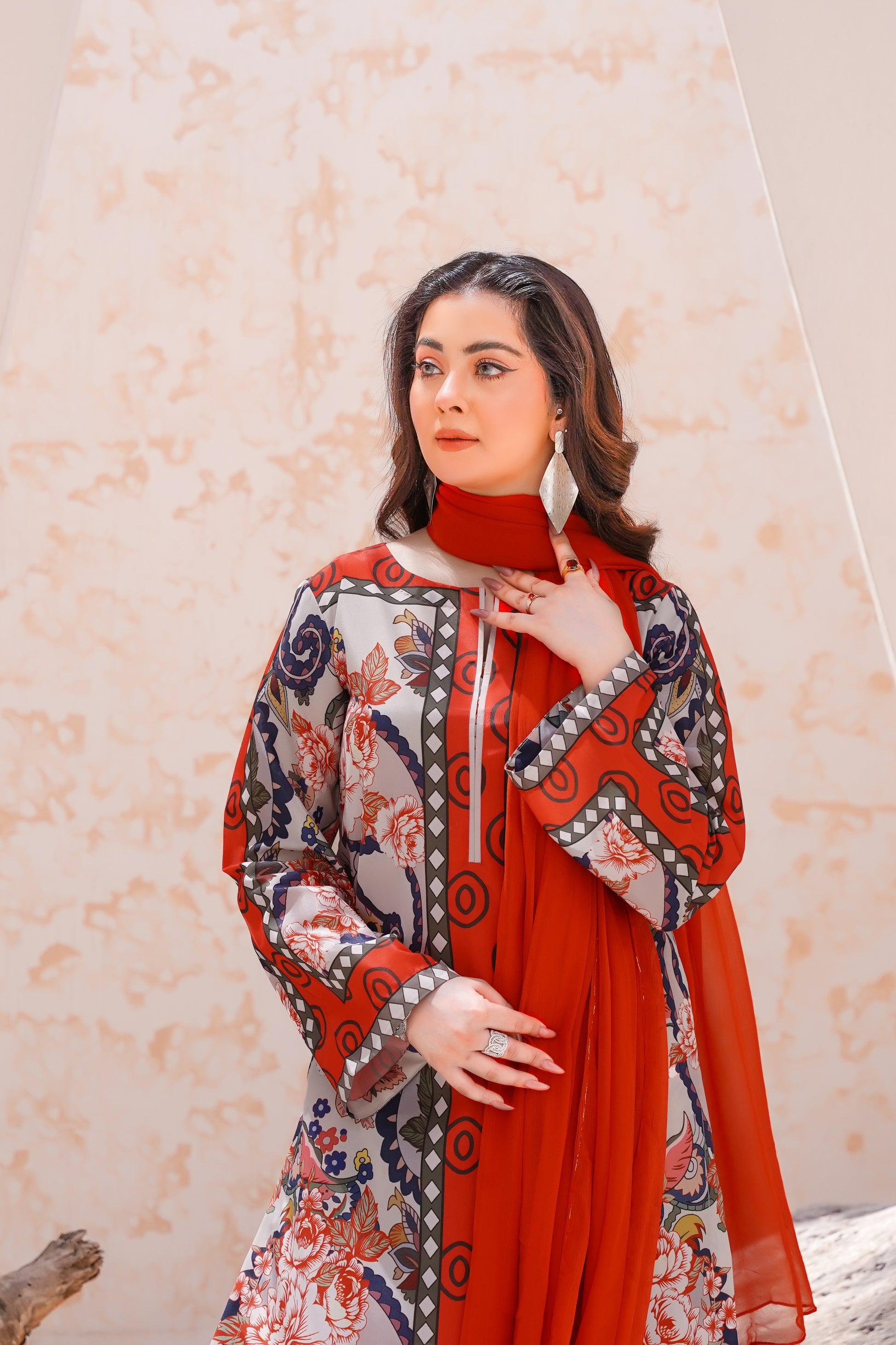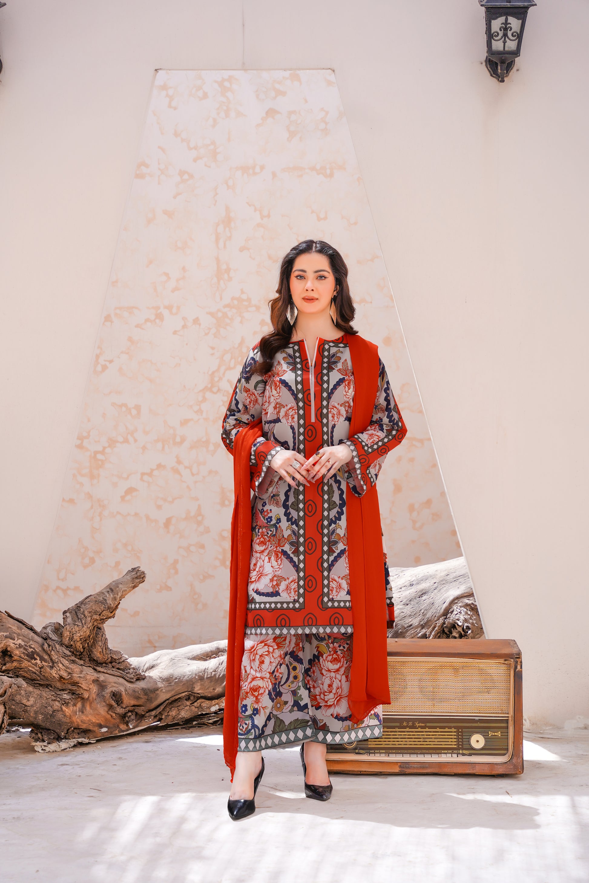Lawn silk print fabric chiffon dupatta paired with same trouser is a premium fabric that blends the lightweight breathability of lawn with the smooth, glossy texture of silk. Ideal for warm weather, it offers a soft, elegant drape, making it perfect for stylish and comfortable summer wear.